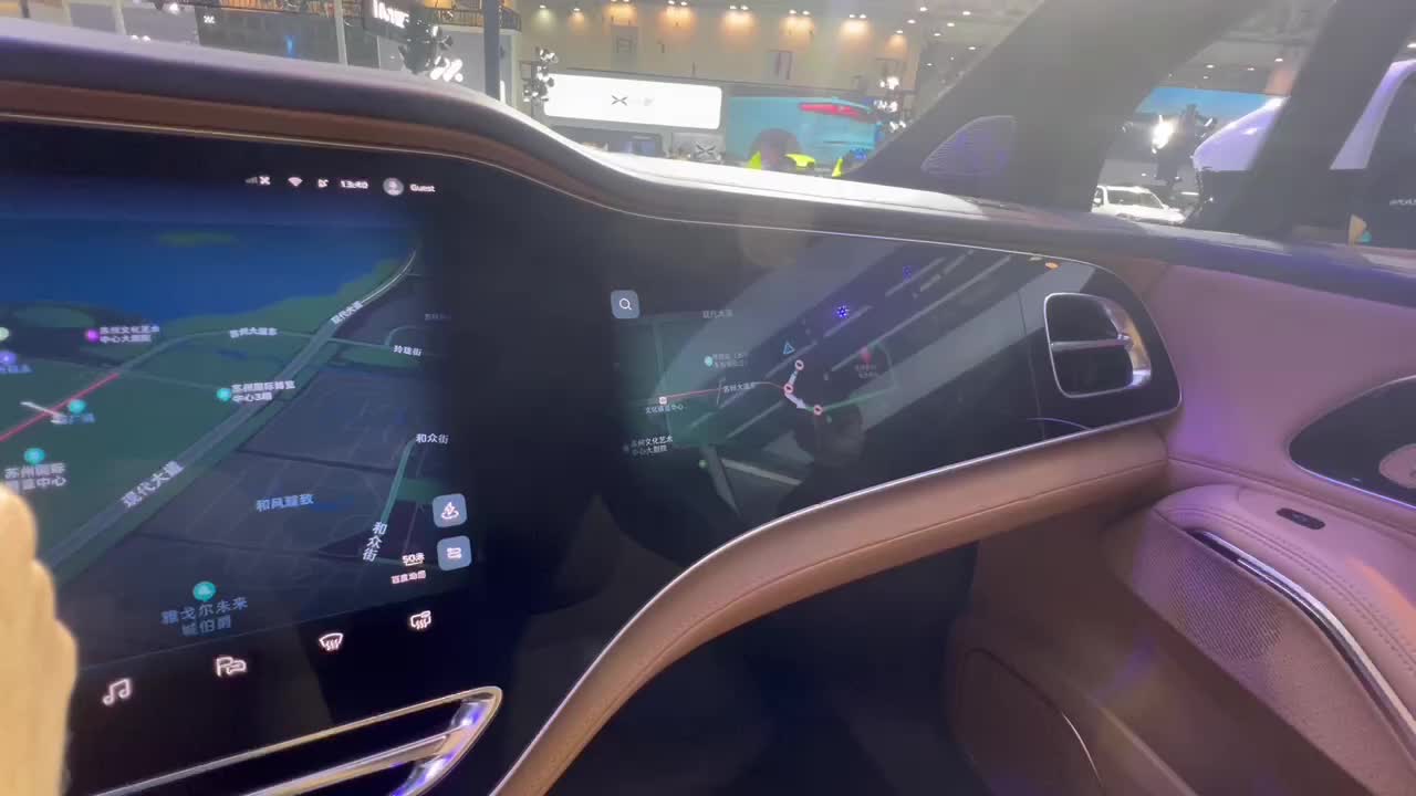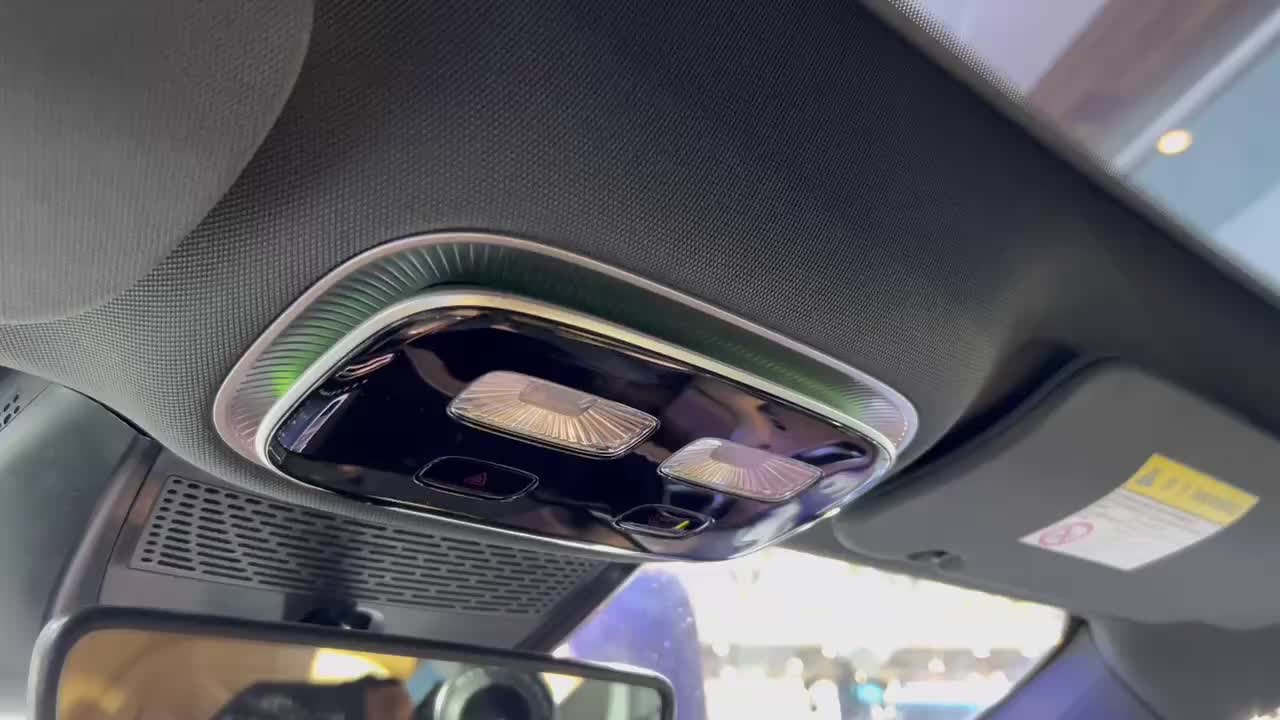 R7 座舱顶部律动氛围灯展示,目前展台两台车都没有上其它氛围灯组件。