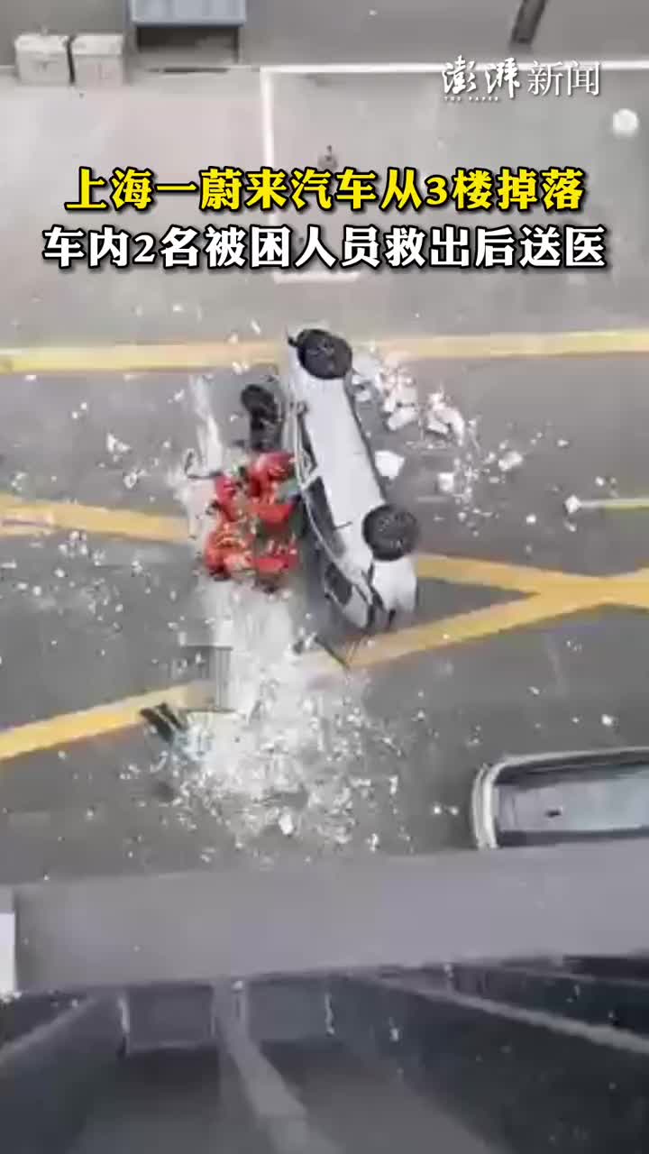 上海一蔚来汽车从3楼掉落,车内2名被困人员救出后送医